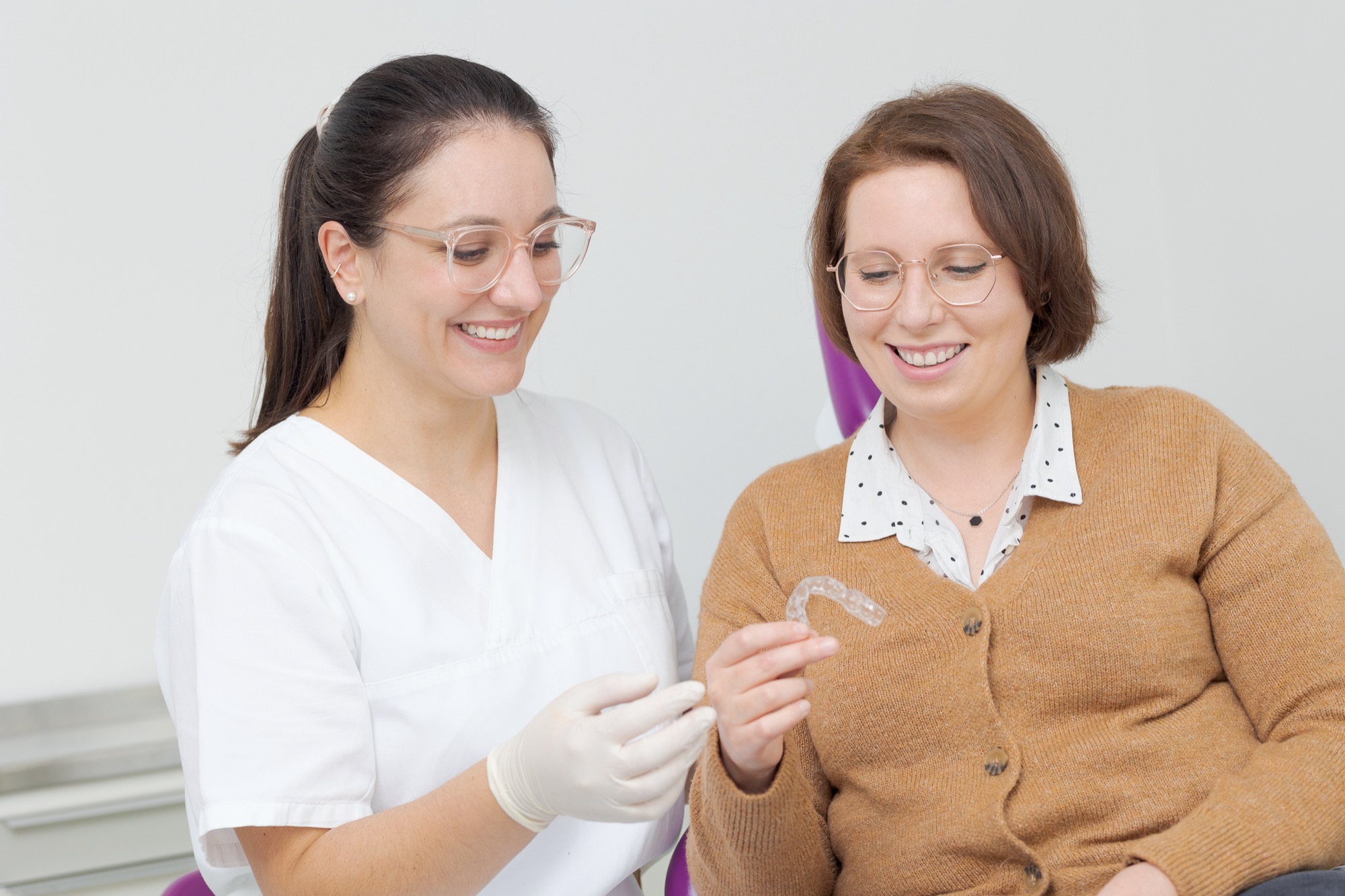 Der Fortschritt der Behandlung wird in regelmäßigen Kontrollterminen in der Praxis überwacht. Die Dauer der Behandlung hängt von der anfänglichen Fehlstellung der Zähne und der konsequenten Tragedauer der Schienen ab und ist sehr individuell. Kleine Unregelmäßigkeiten der Frontzähne lassen sich in der Regel aber innerhalb weniger Monate korrigieren. Nach Abschluss der Behandlung empfiehlt es sich, zum Erhalt des Ergebnisses einen Retainer (ein dünner Fixierdraht, der hinter den Zähnen befestigt wird) anzubringen. So können sich die Zähne in ihrer neuen Position festigen und einem Rezidiv der Fehlstellung vorgebeugt werden.